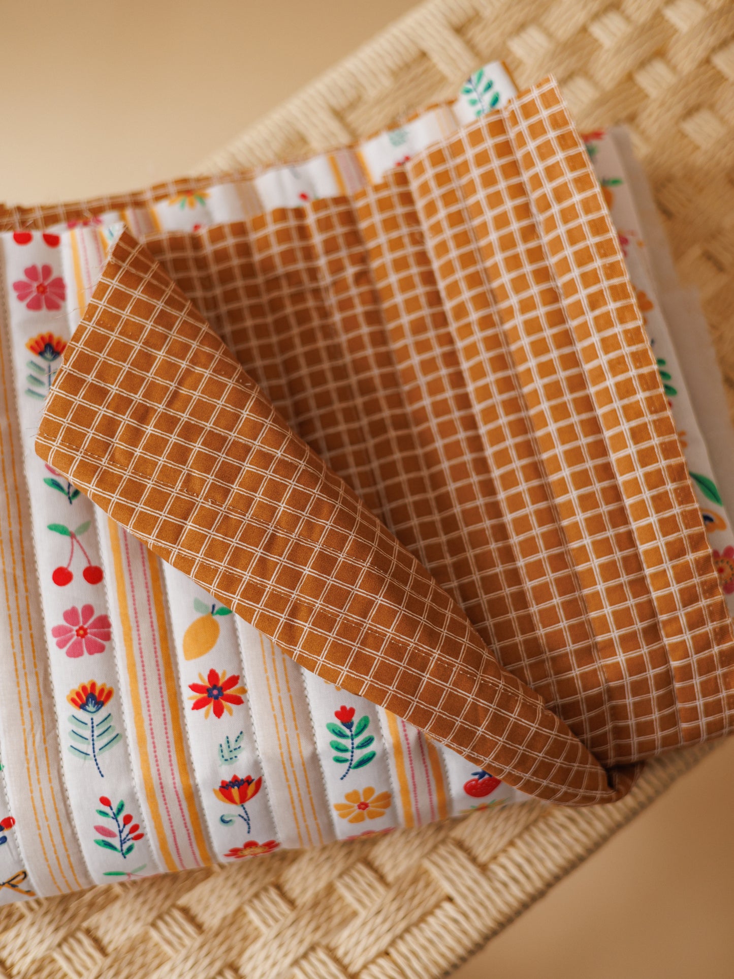 Quilted muslin / Caramel checkers