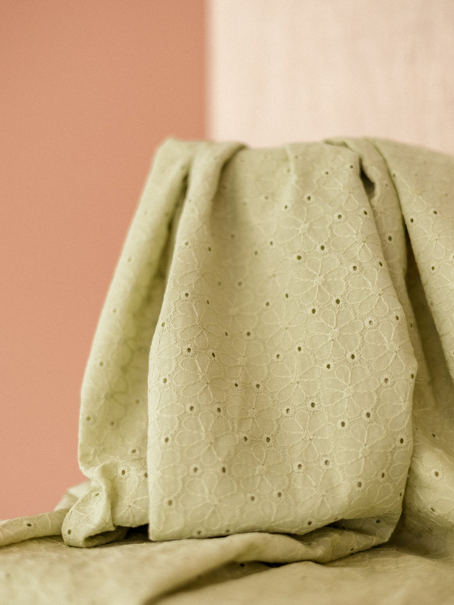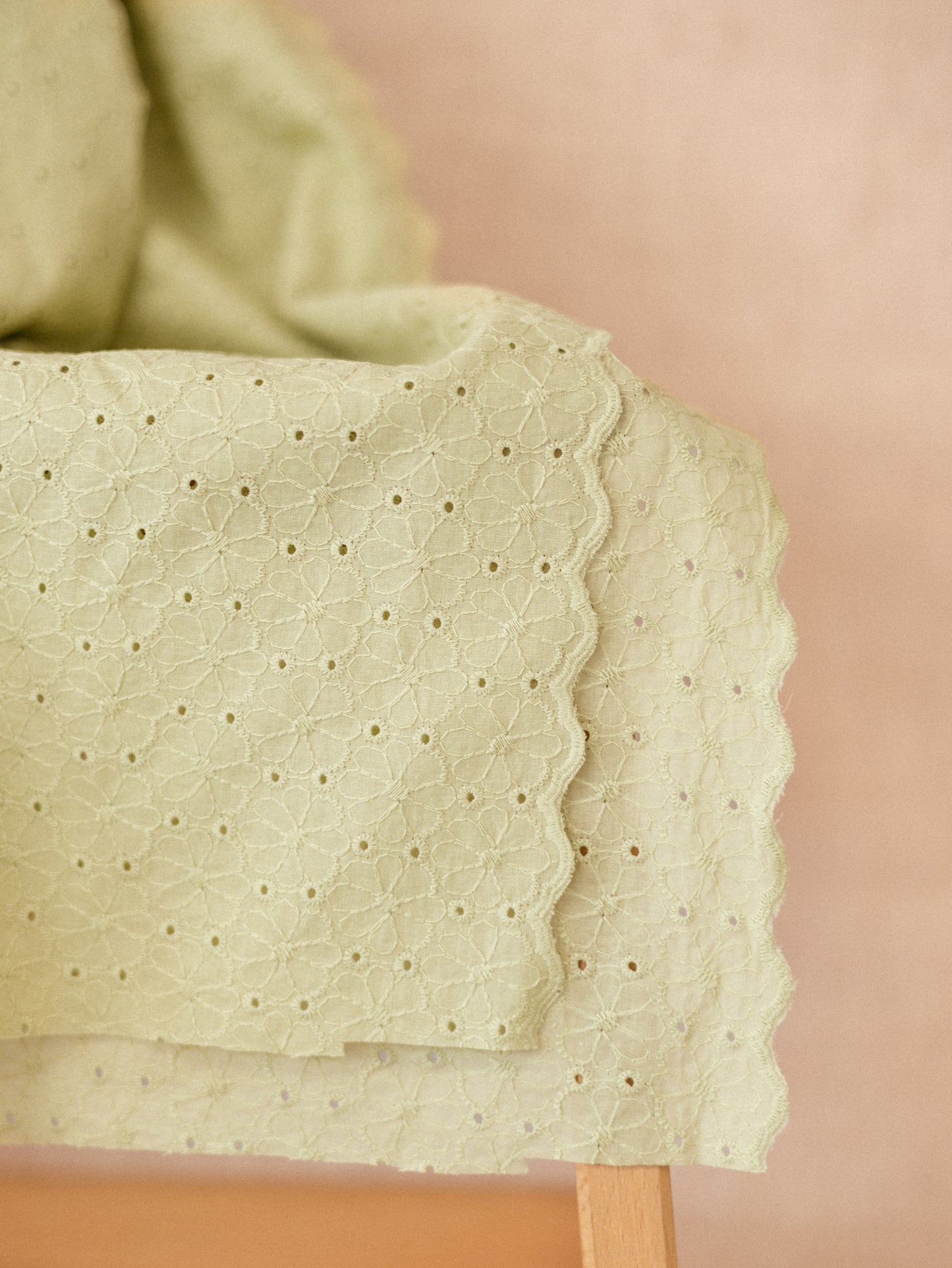 Cotton / Embroidered Flowers With trim - Apple