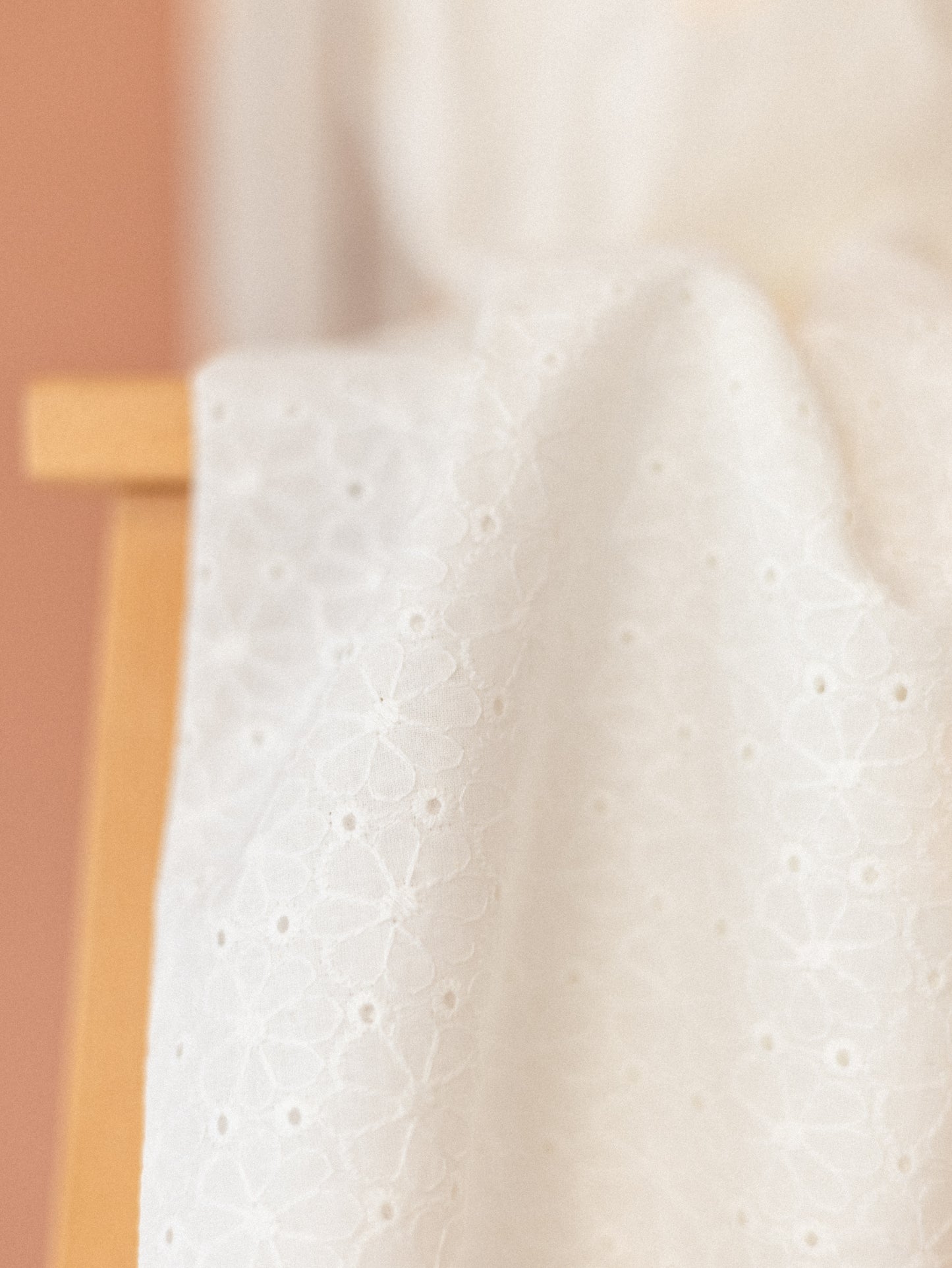 Cotton / Embroidered Flowers With trim - Ivory
