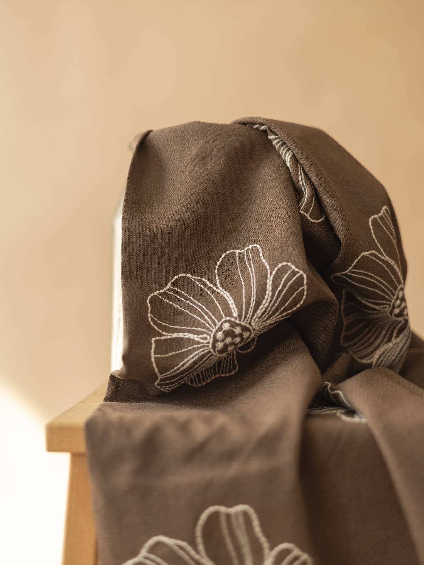 Add Linen + Viscose / Taupe Embroidered Floral to the cart