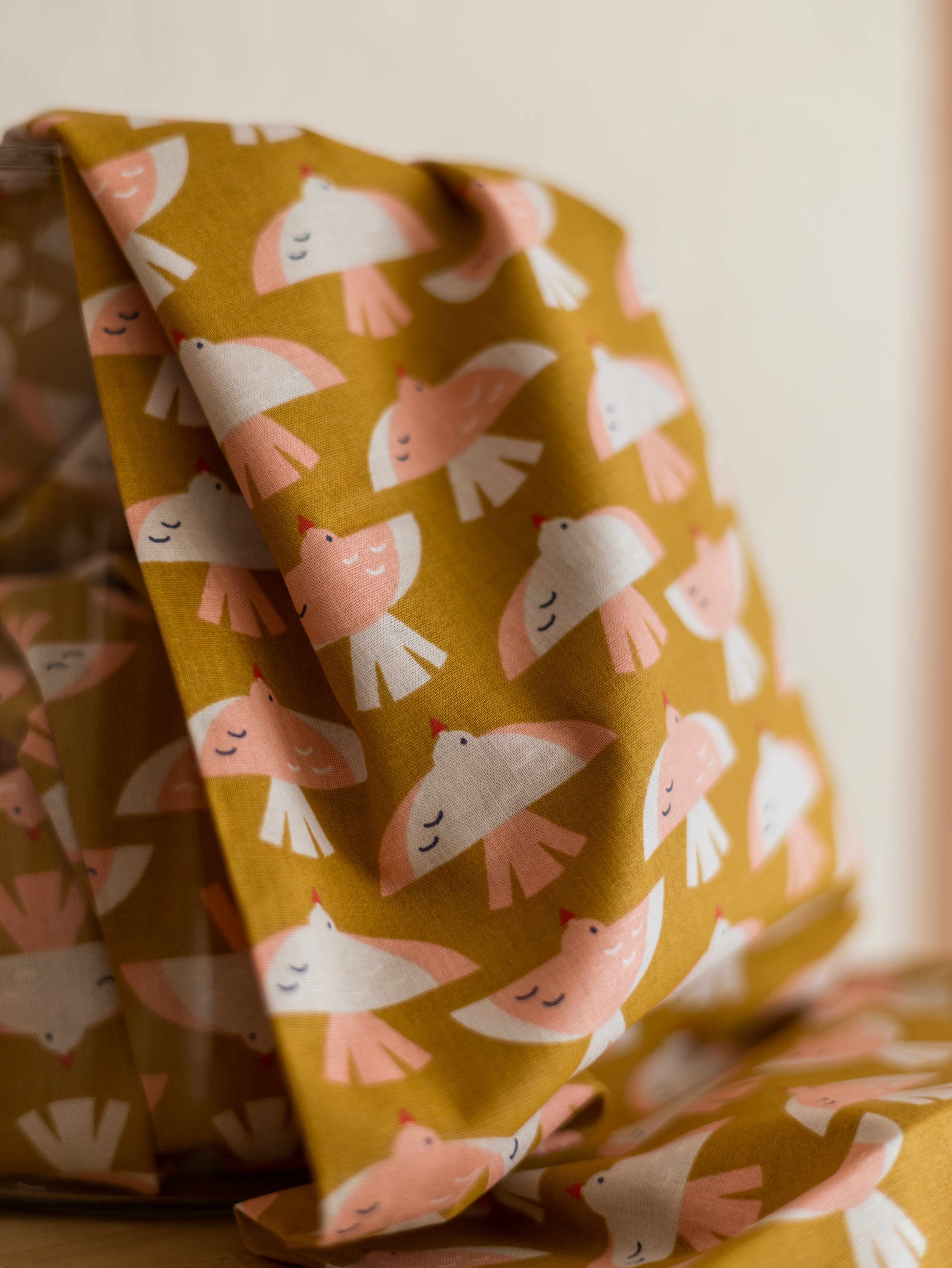 Cotton Poplin / Pink & Yellow Birds