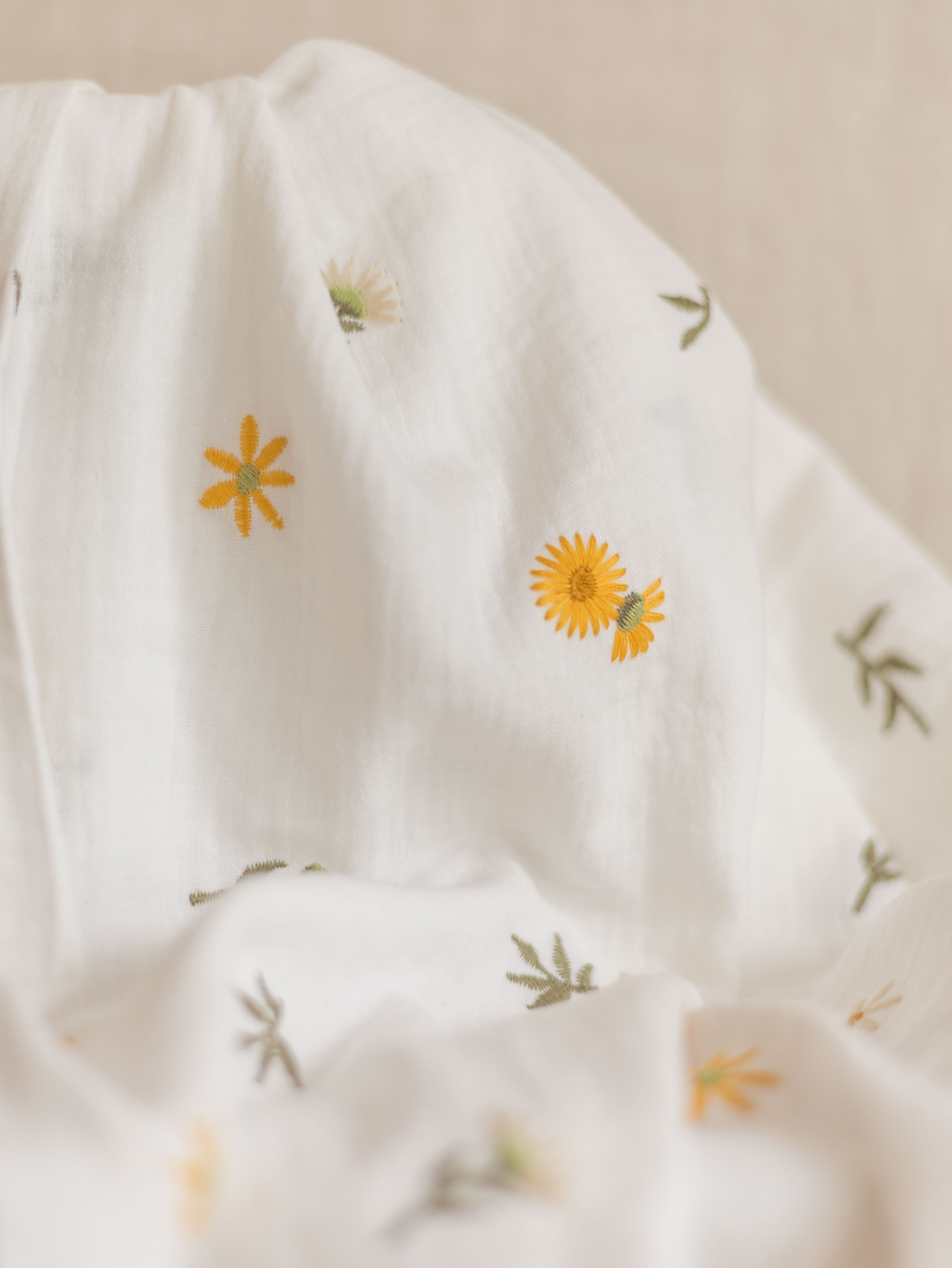 Embroidered muslin / spring flowers - ivory