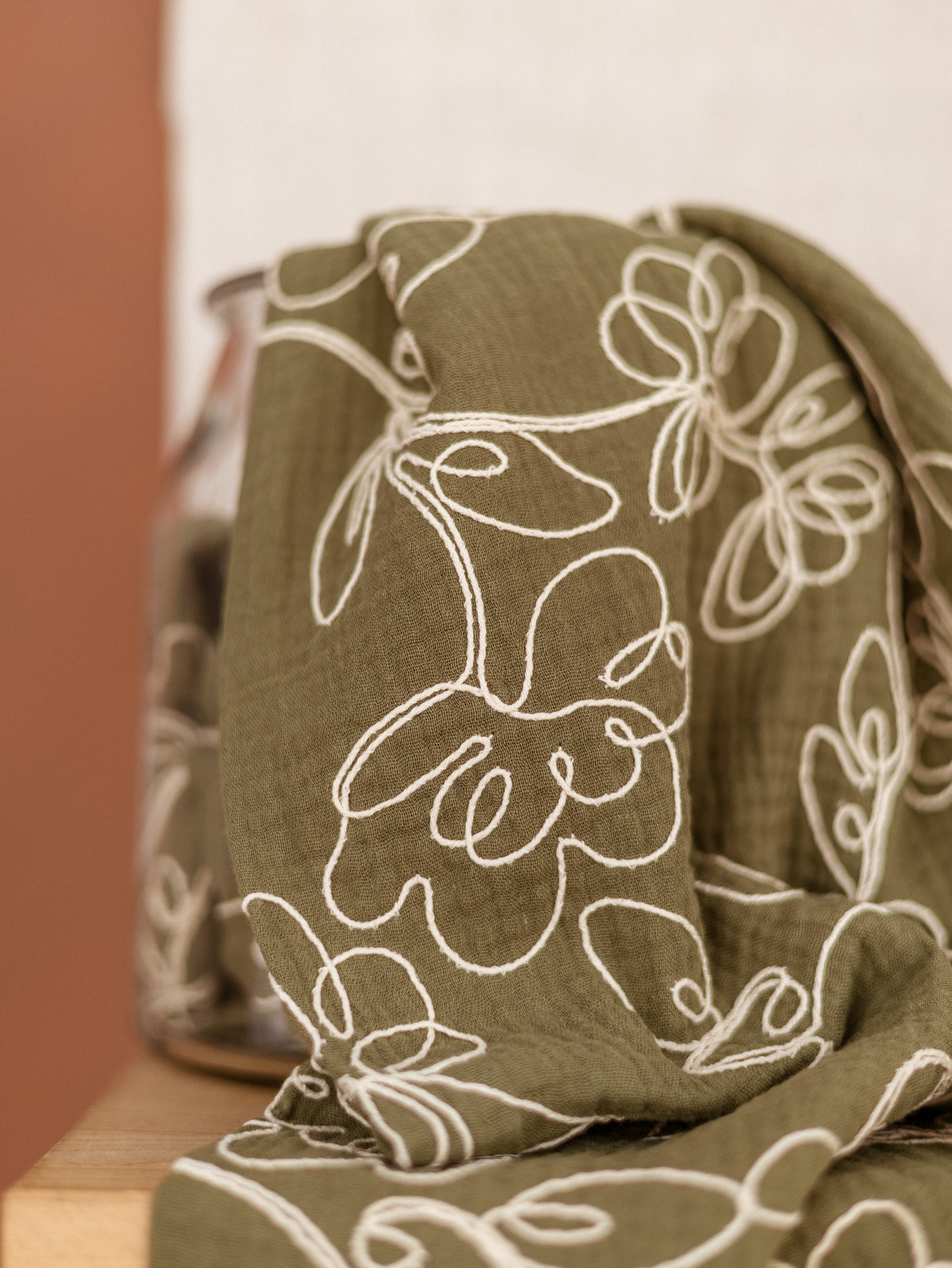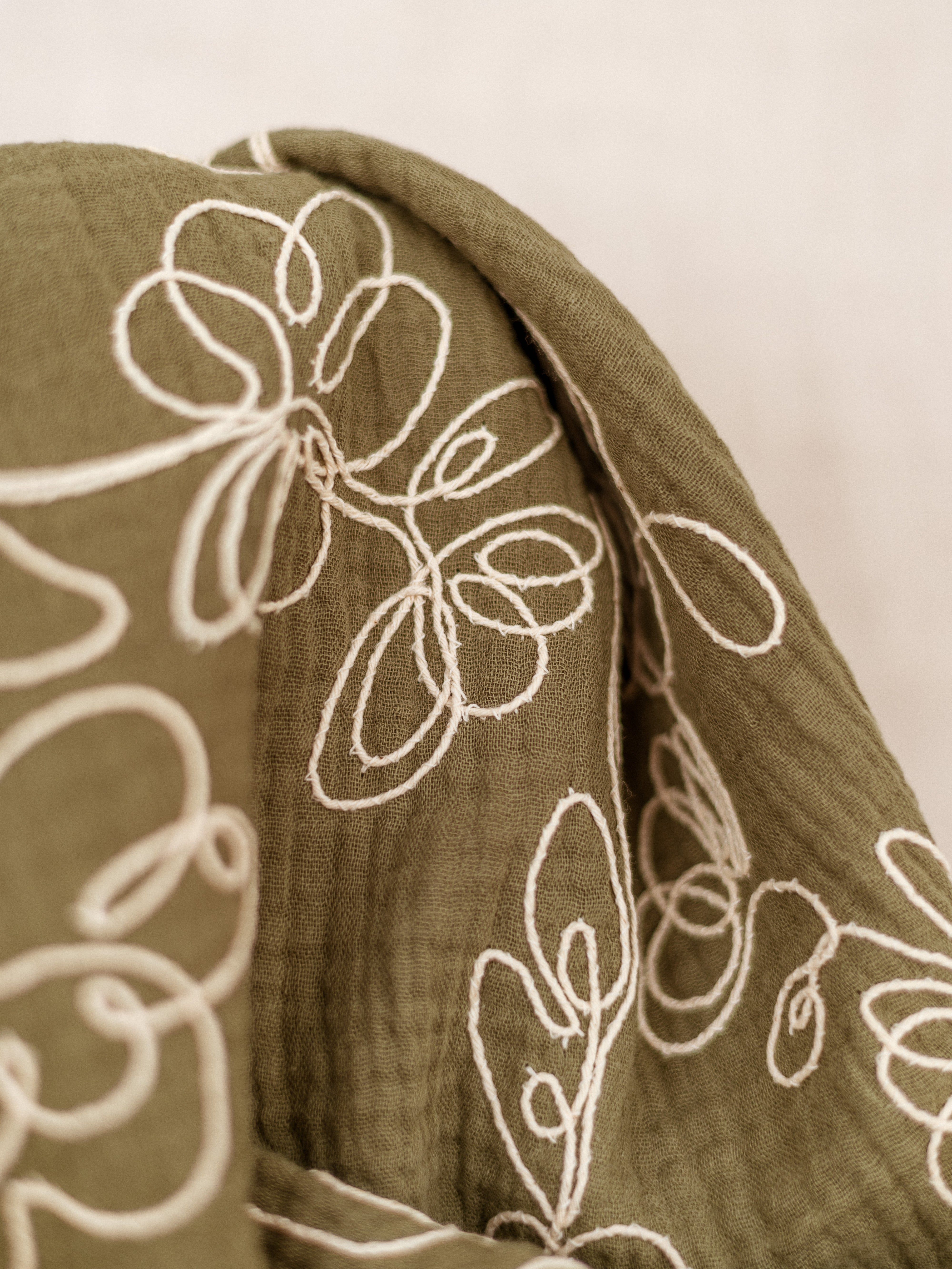 Cotton Muslin / Embroidered Olive