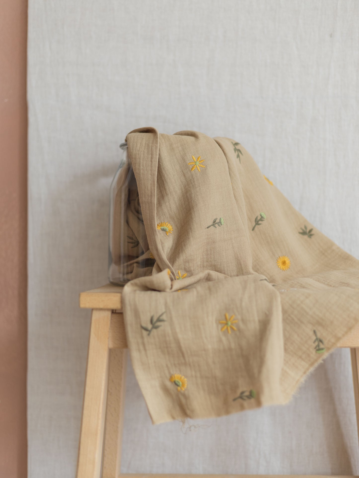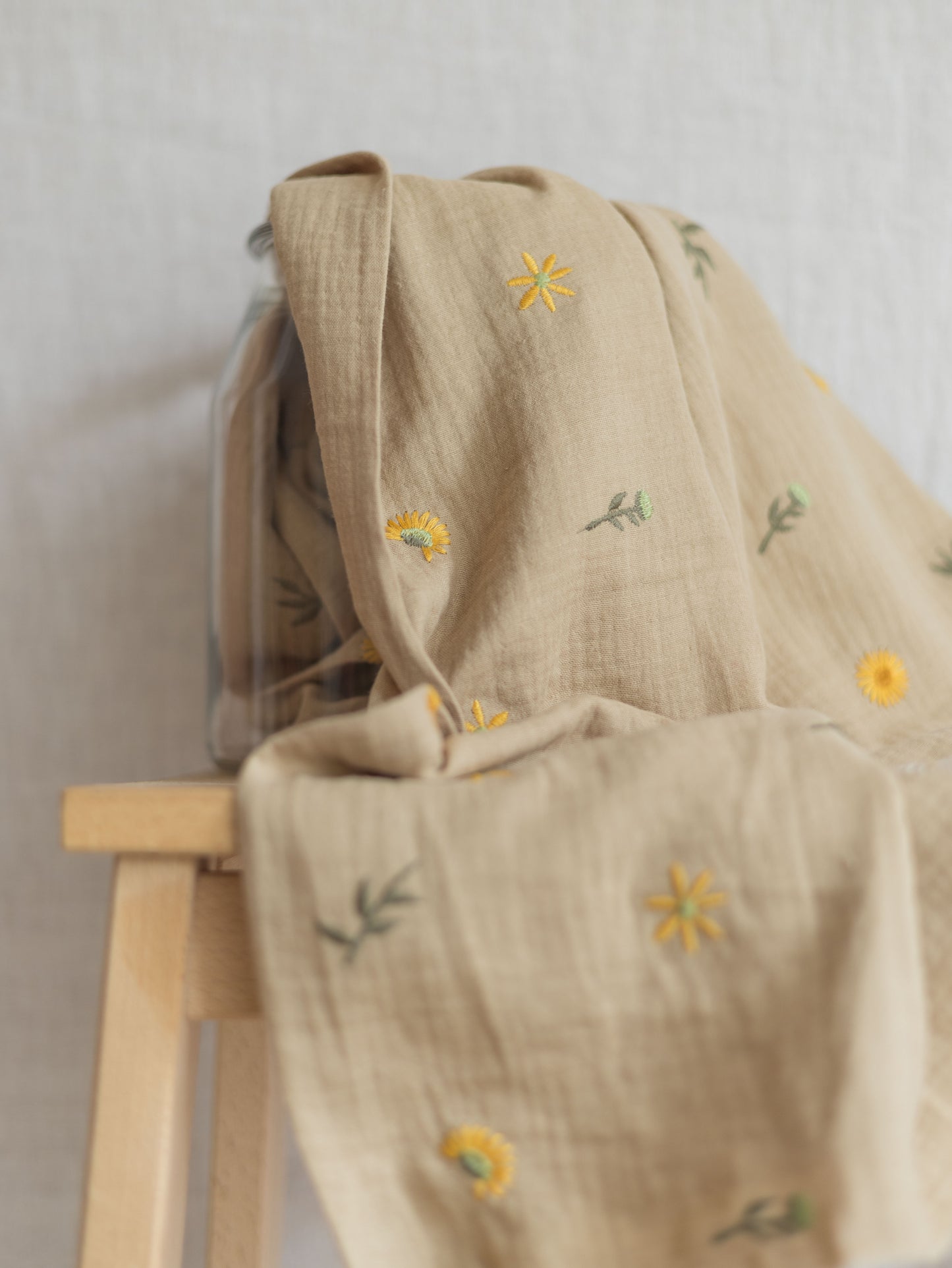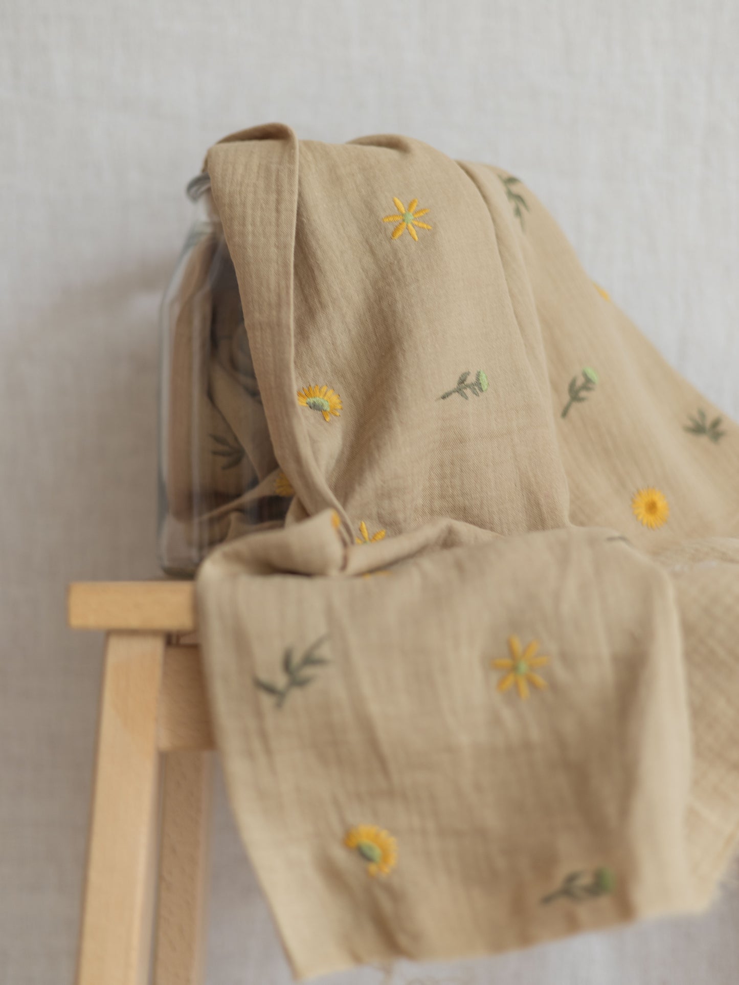 Embroidered muslin / spring flowers - beige