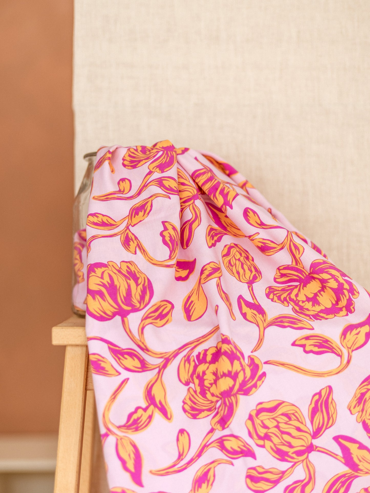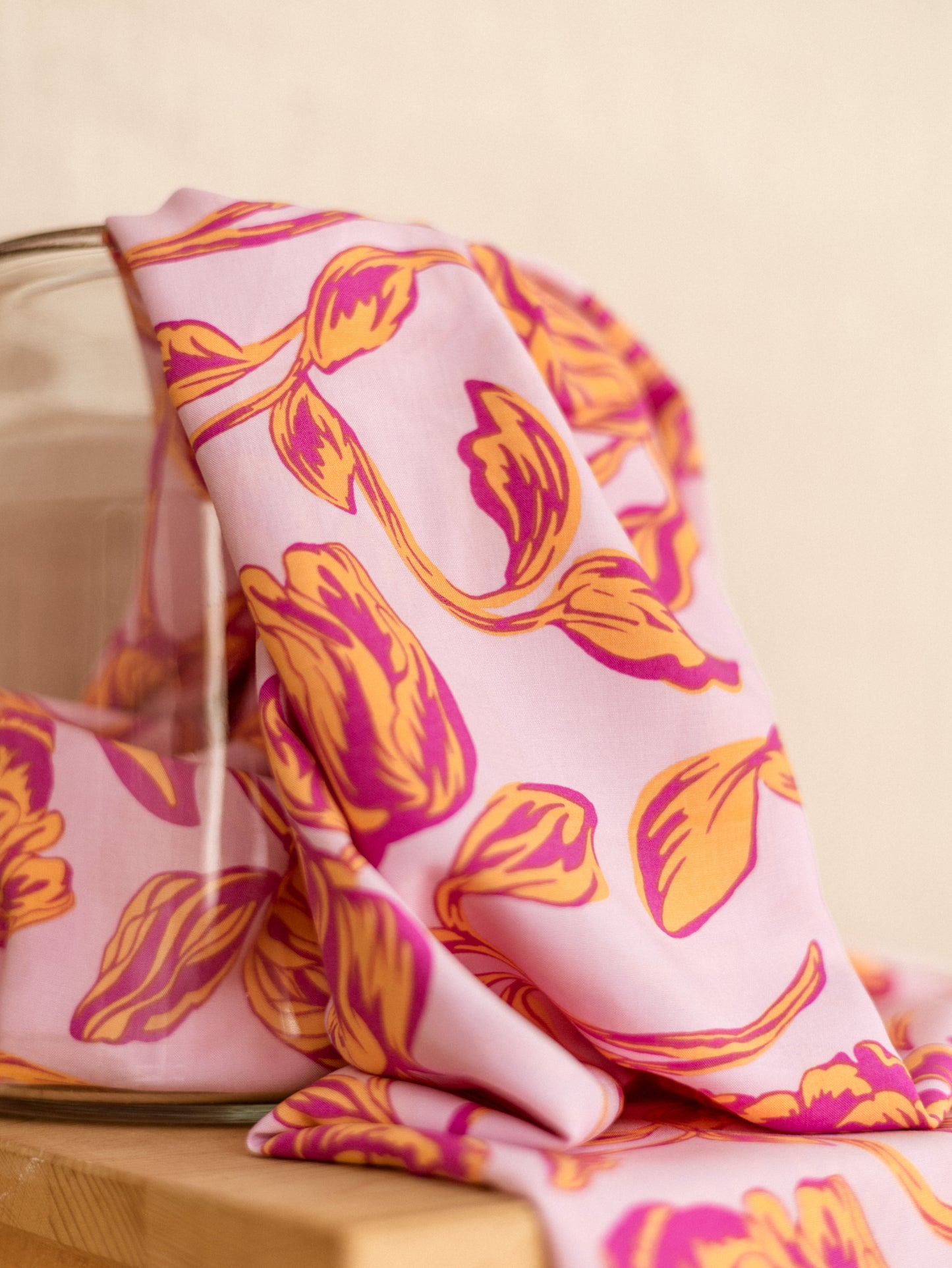 Viscose / Large Floral - Fuchsia + Peach