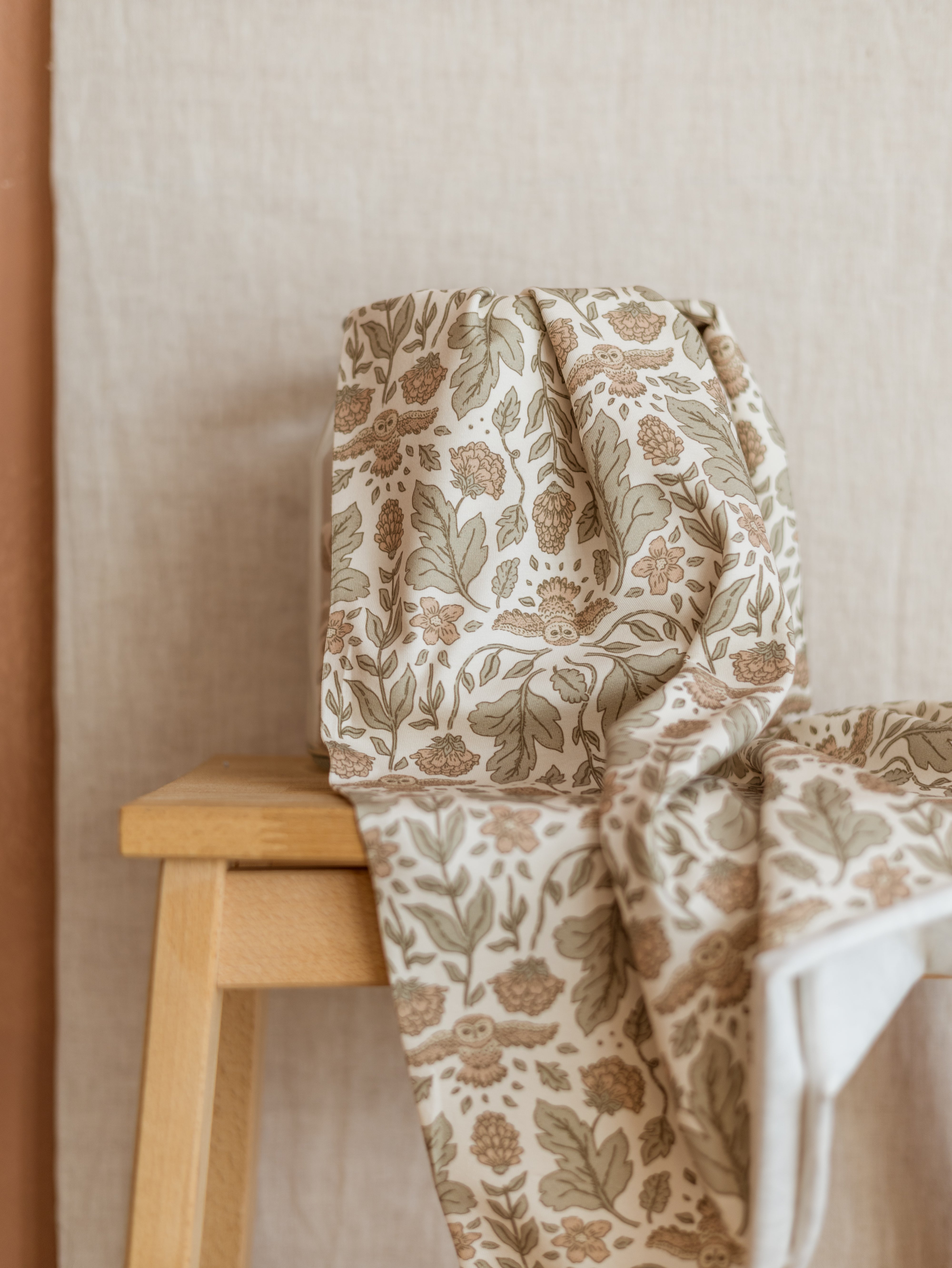 Cotton french terry / botanical owls - ecru
