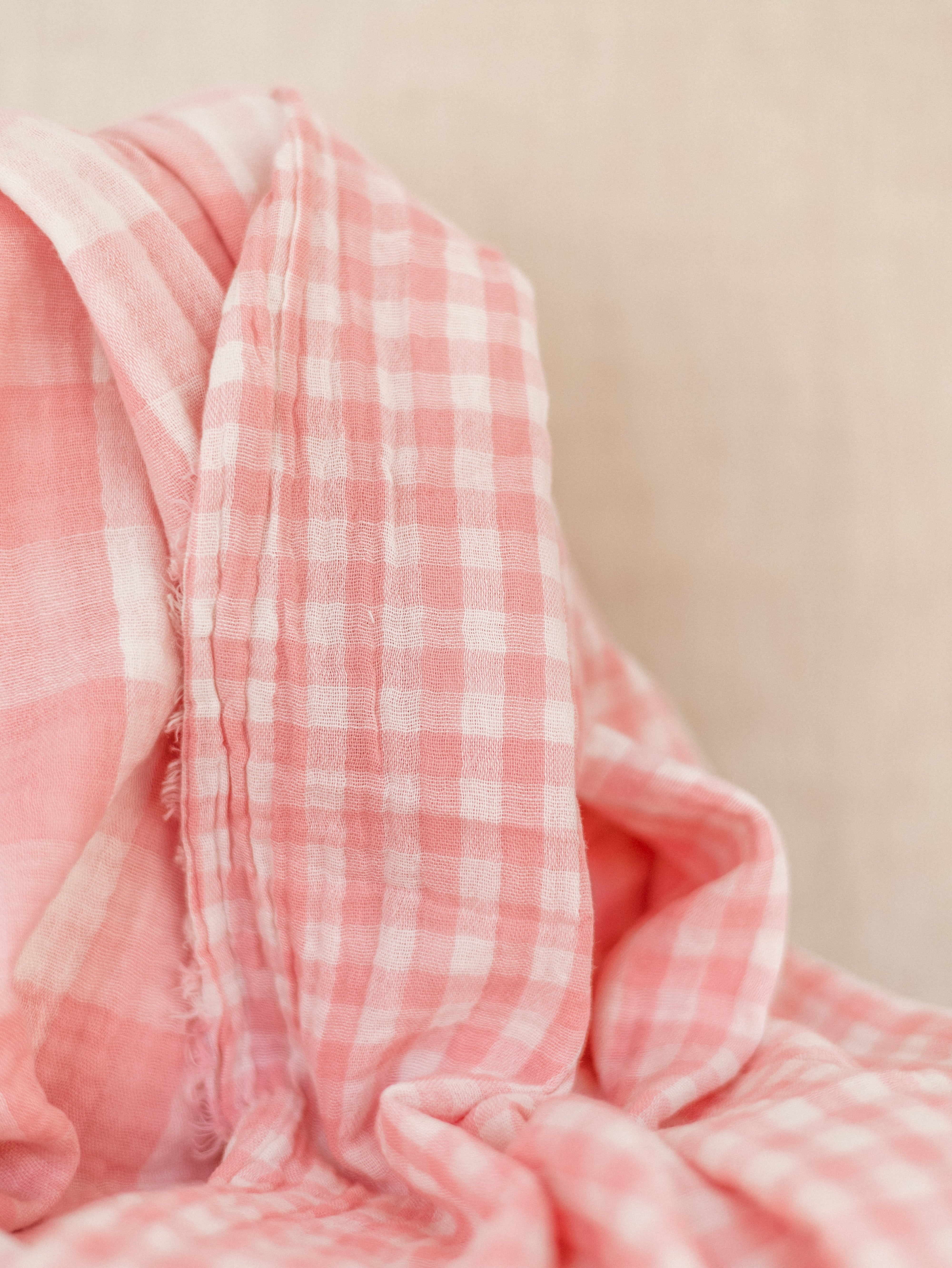 Double layer muslin / gingham bubblegum pink