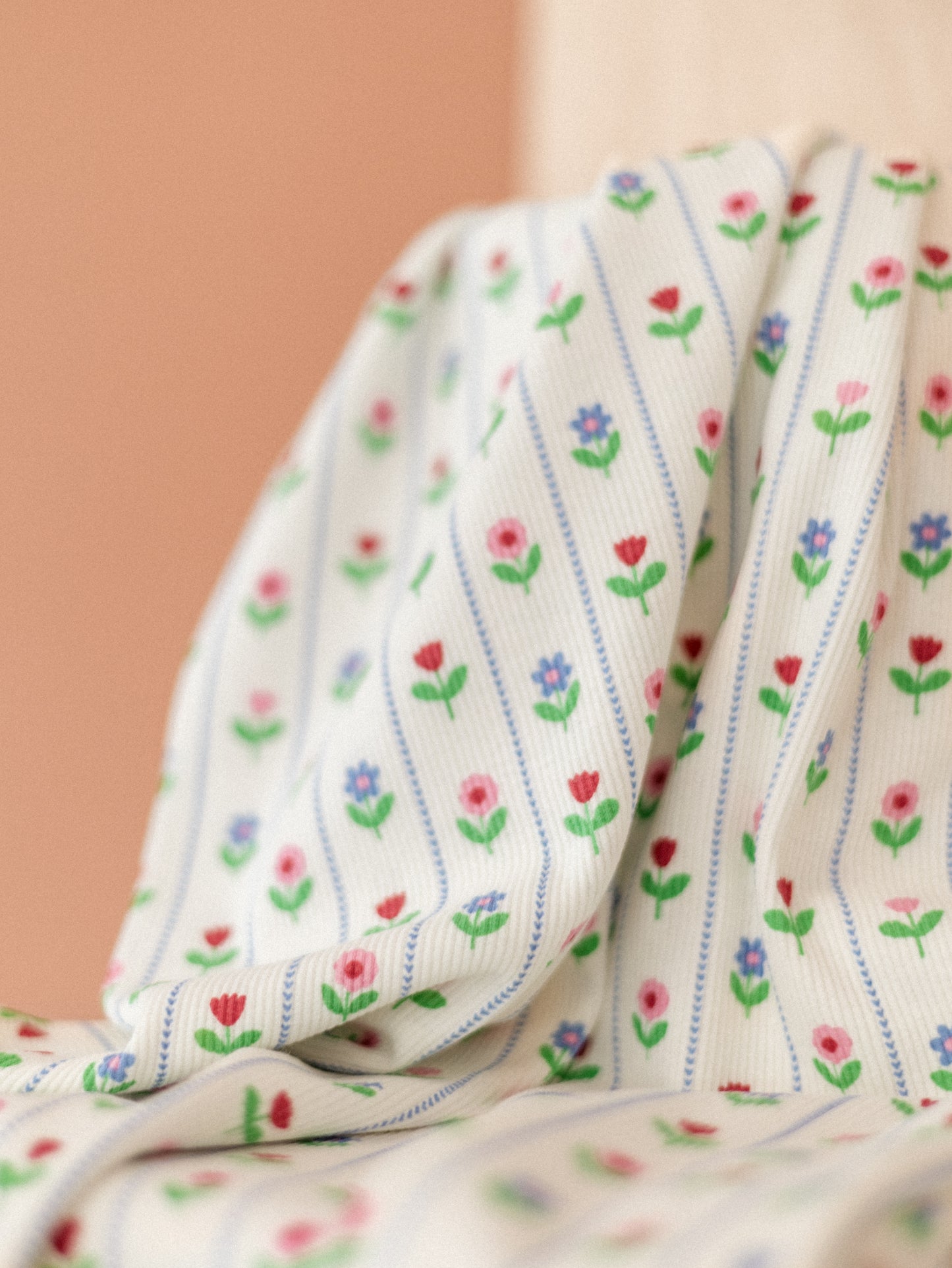 Ribbed Jersey / Stripes & Florals - Off white