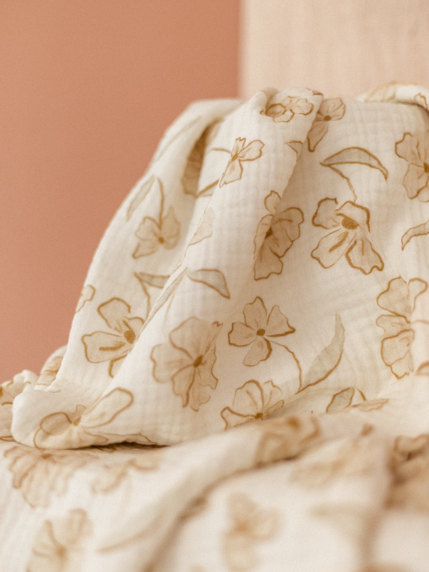 Triple layer muslin / Light peach flowers