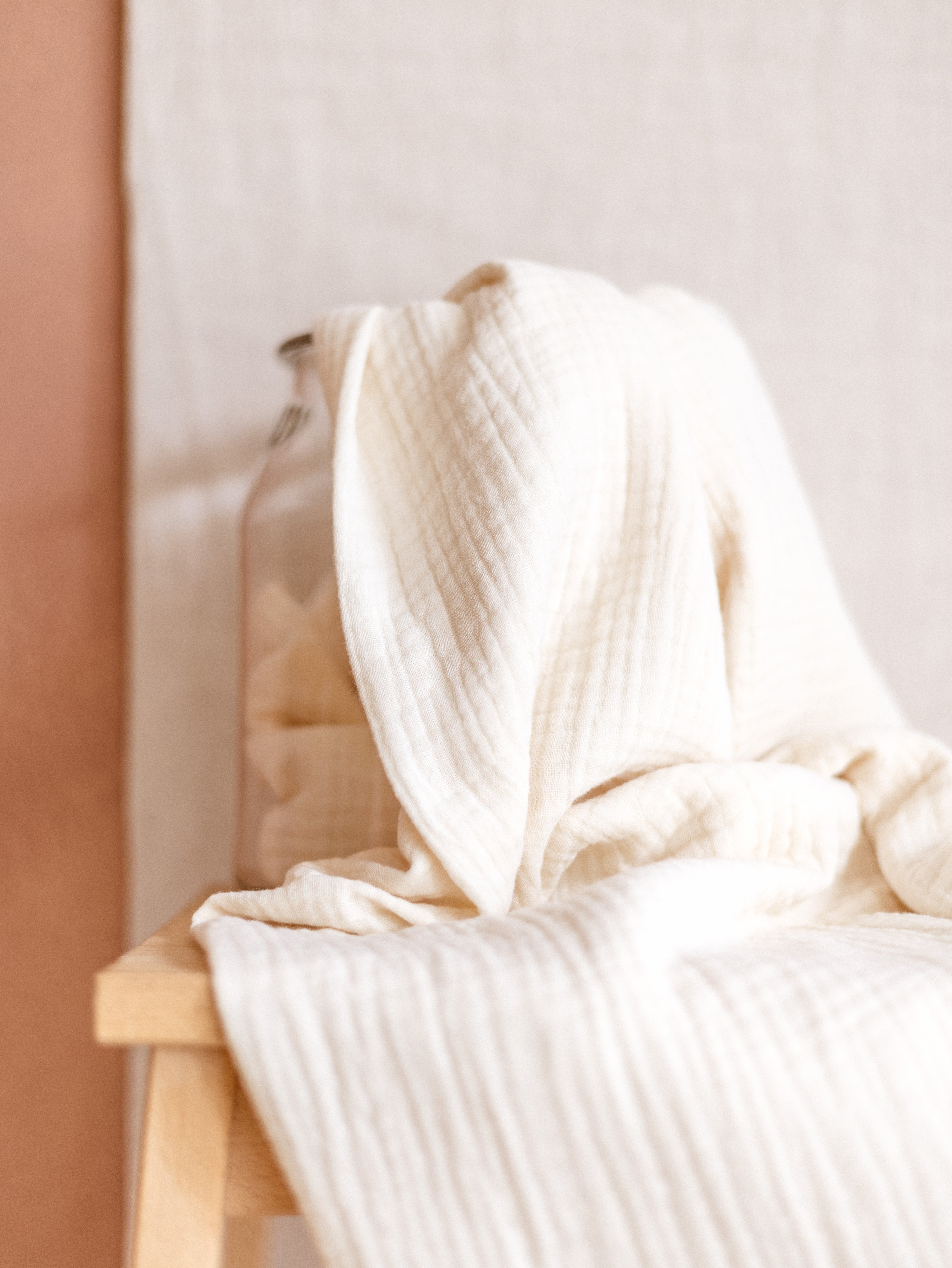 Troslojni muslin, izjemno mehak in puhast. 100 % bombažni muslin.