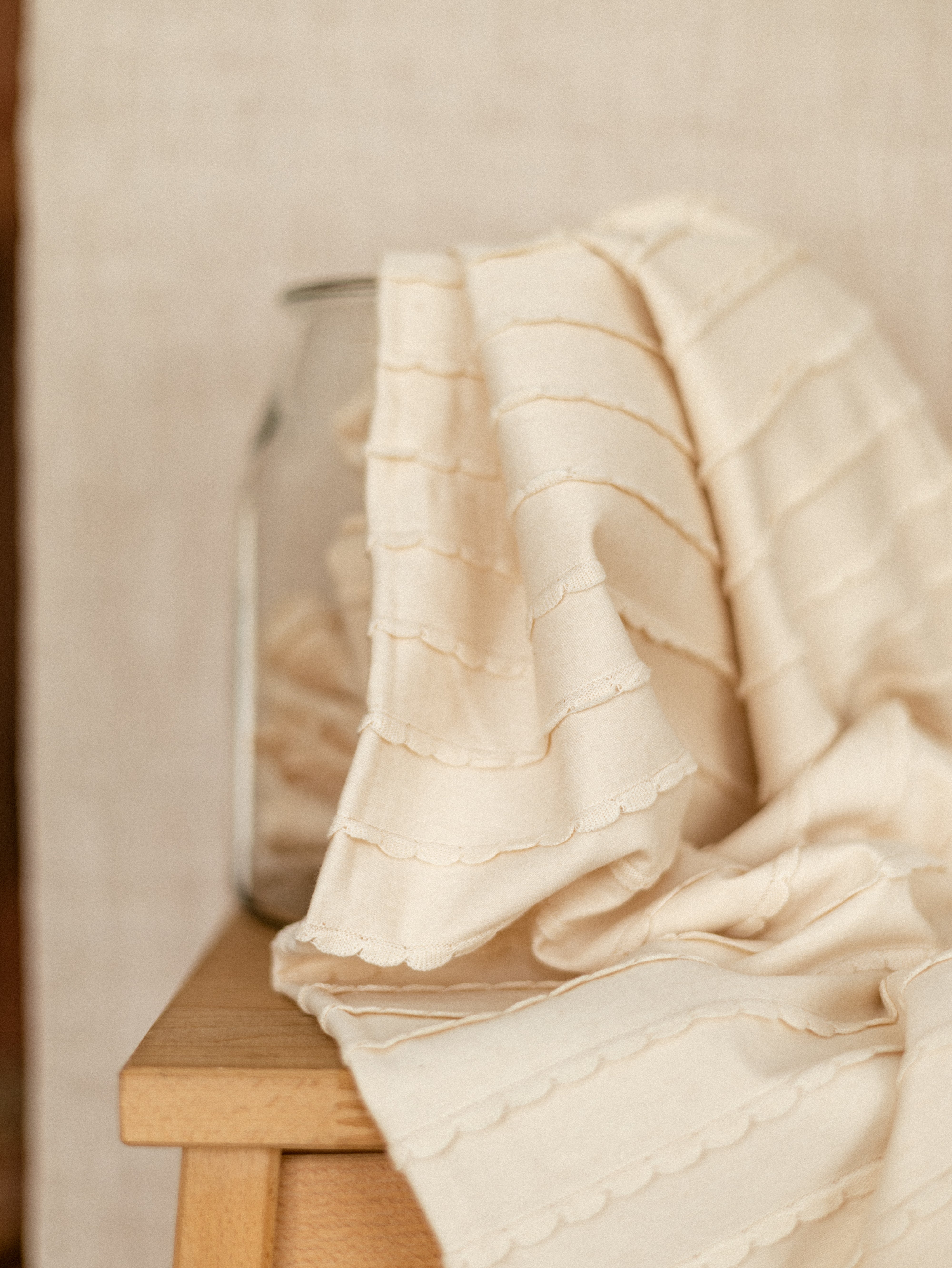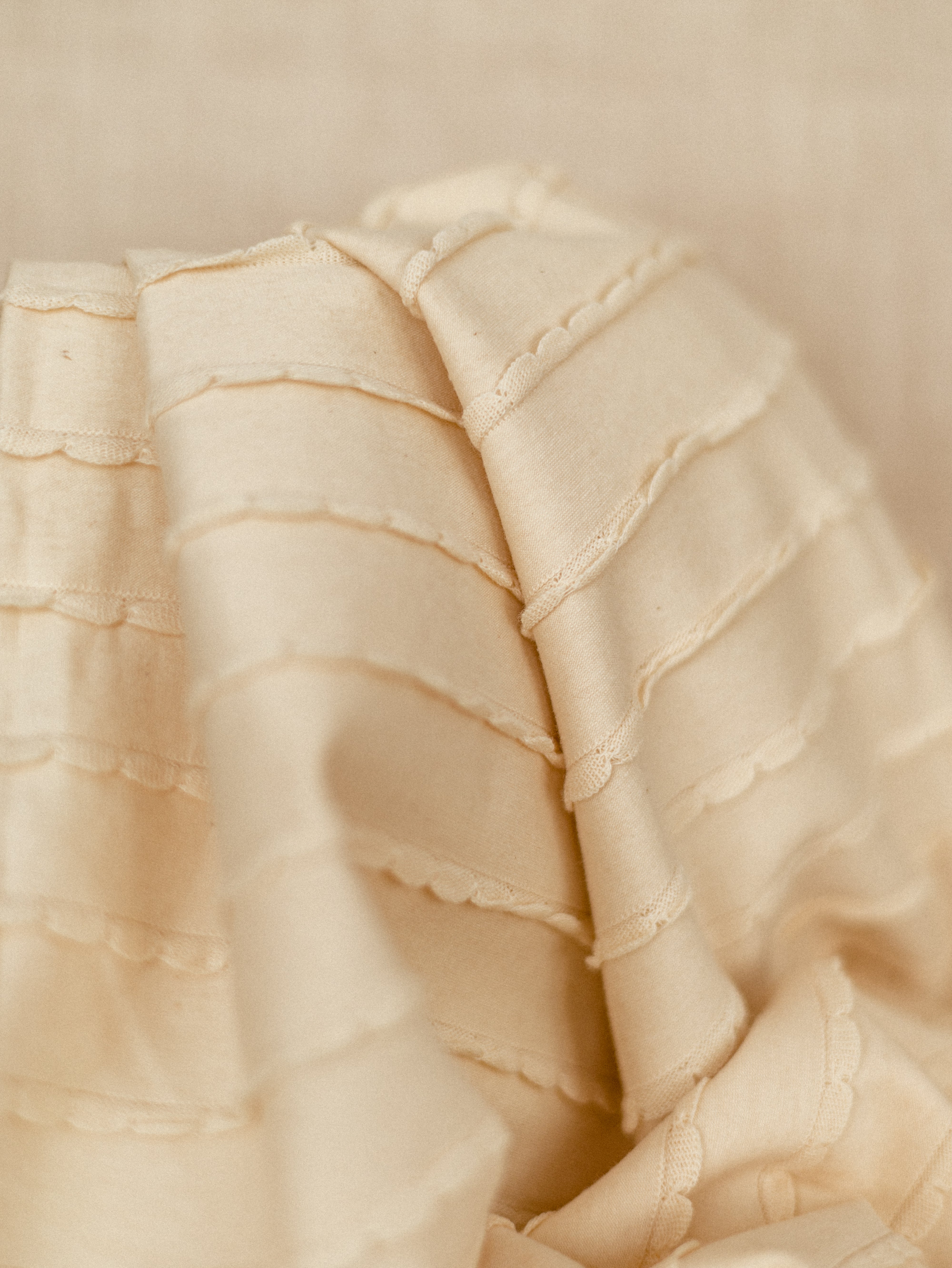in še naprej se trudimo poiskati najlepše materiale, za katere vrjamemo, da jih boste oboževali. Muslin, nevtralni zemeljski toni, nežni vzorčki in vezenine so naši najljubši.