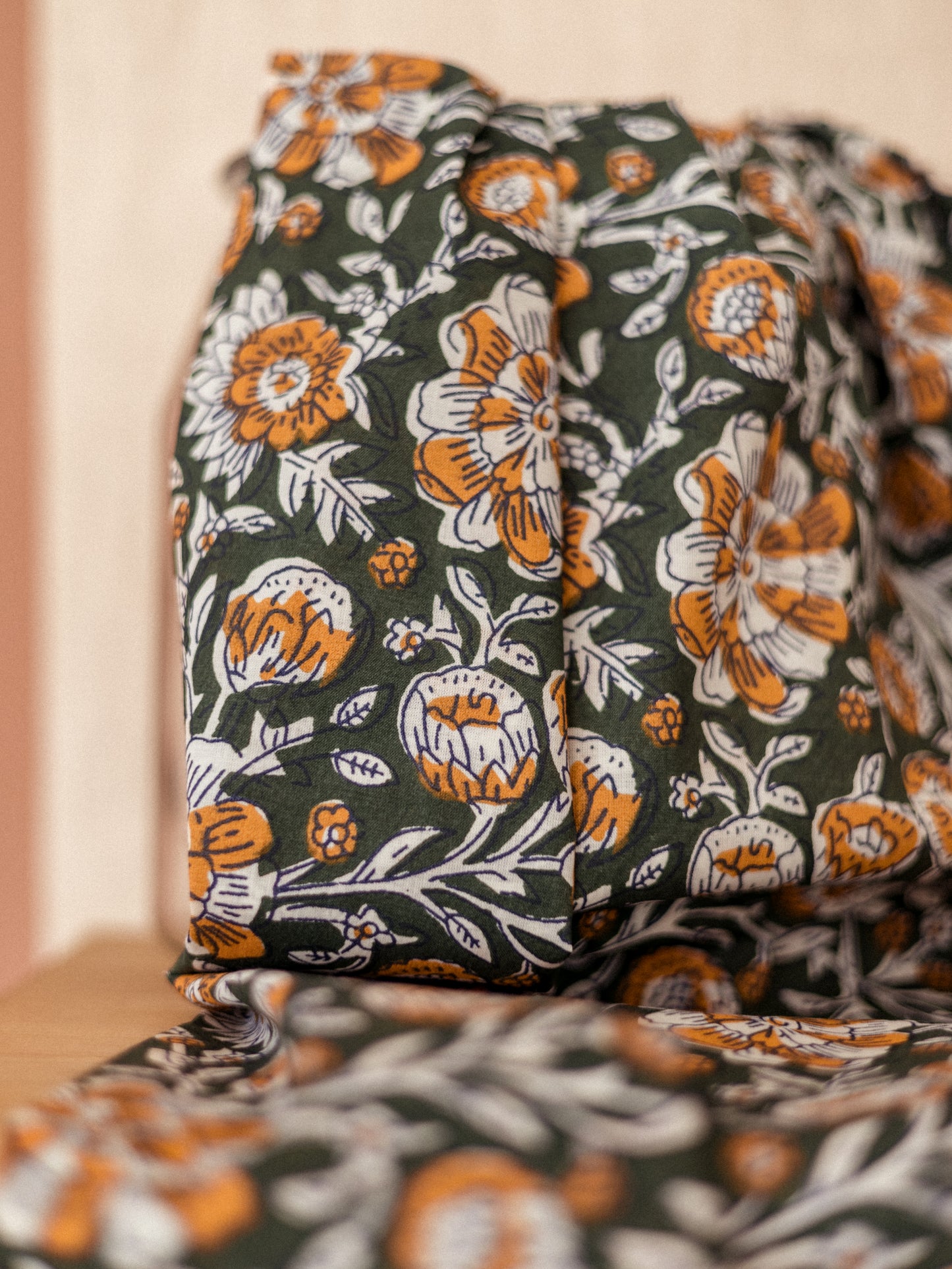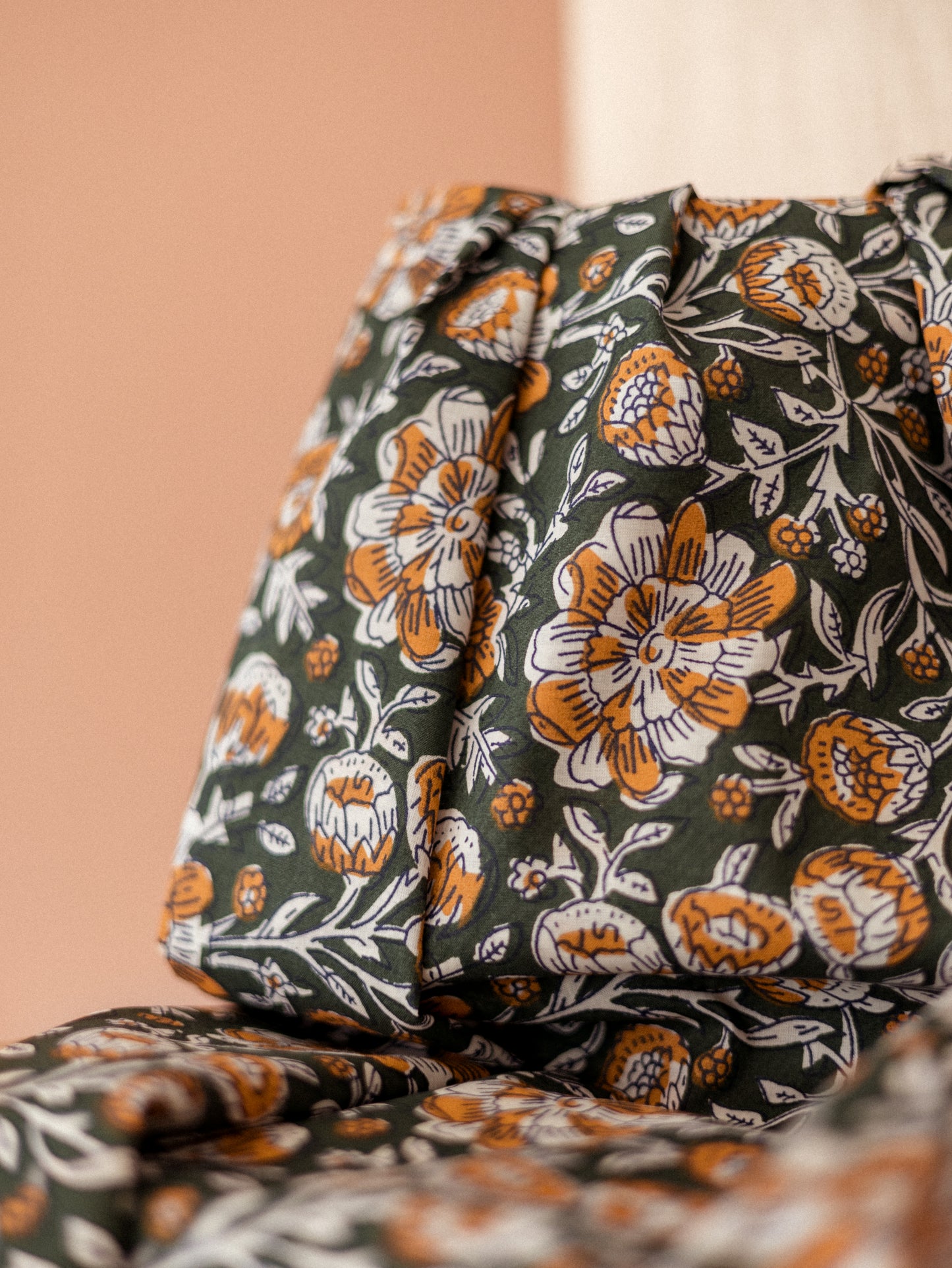 Cotton Voile / Olive Block Print