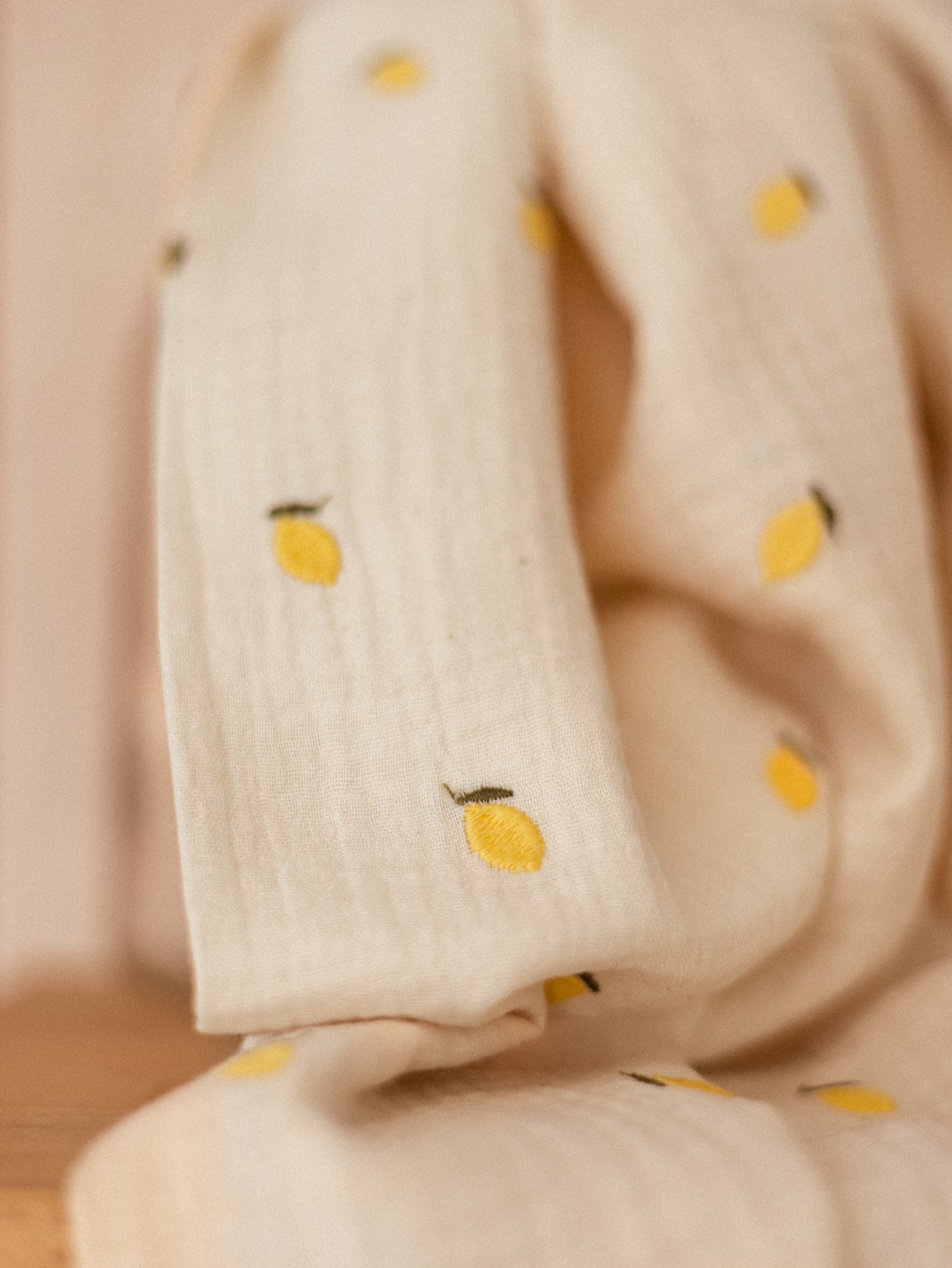 Natural Muslin / Embroidered Lemons