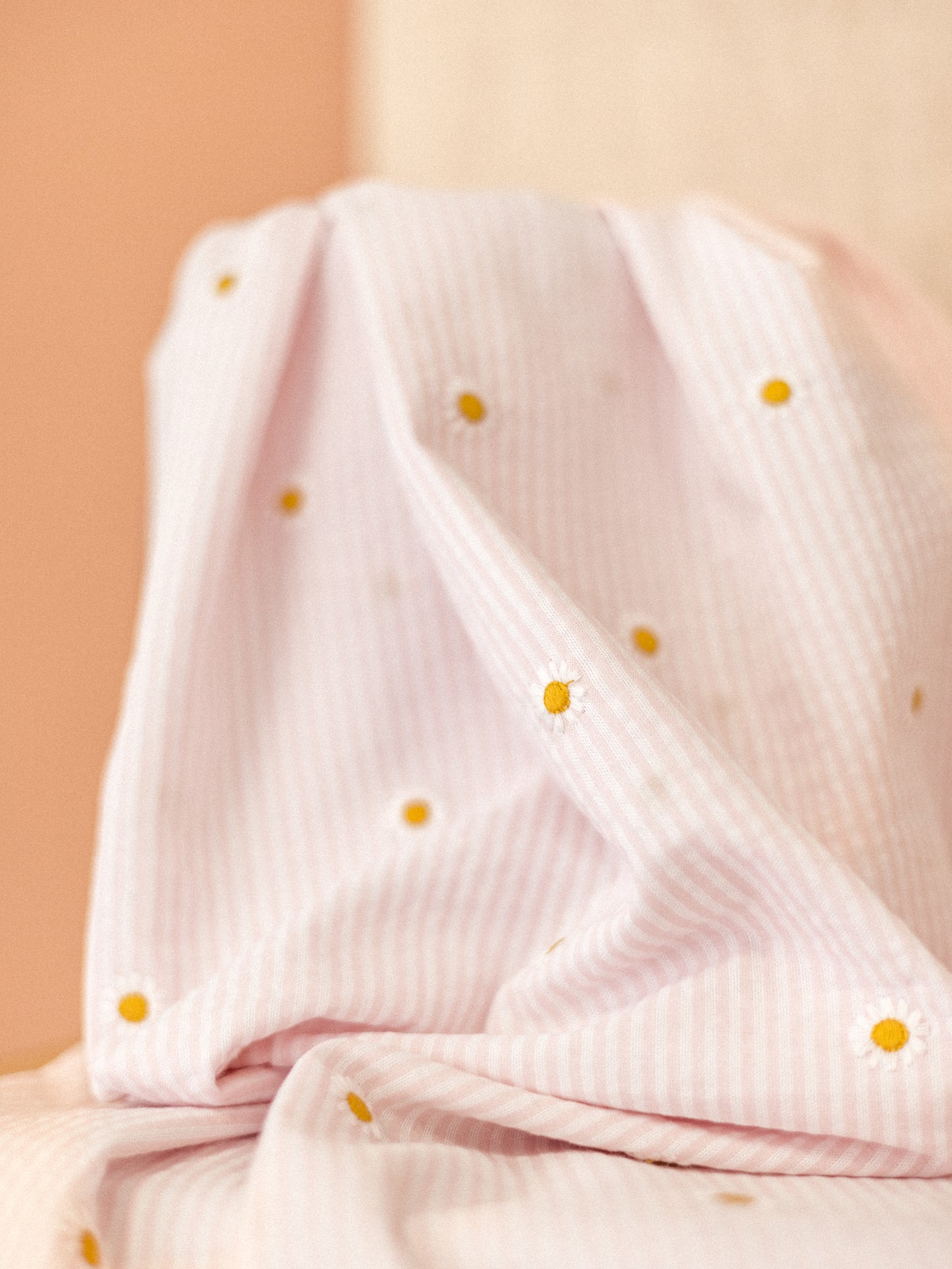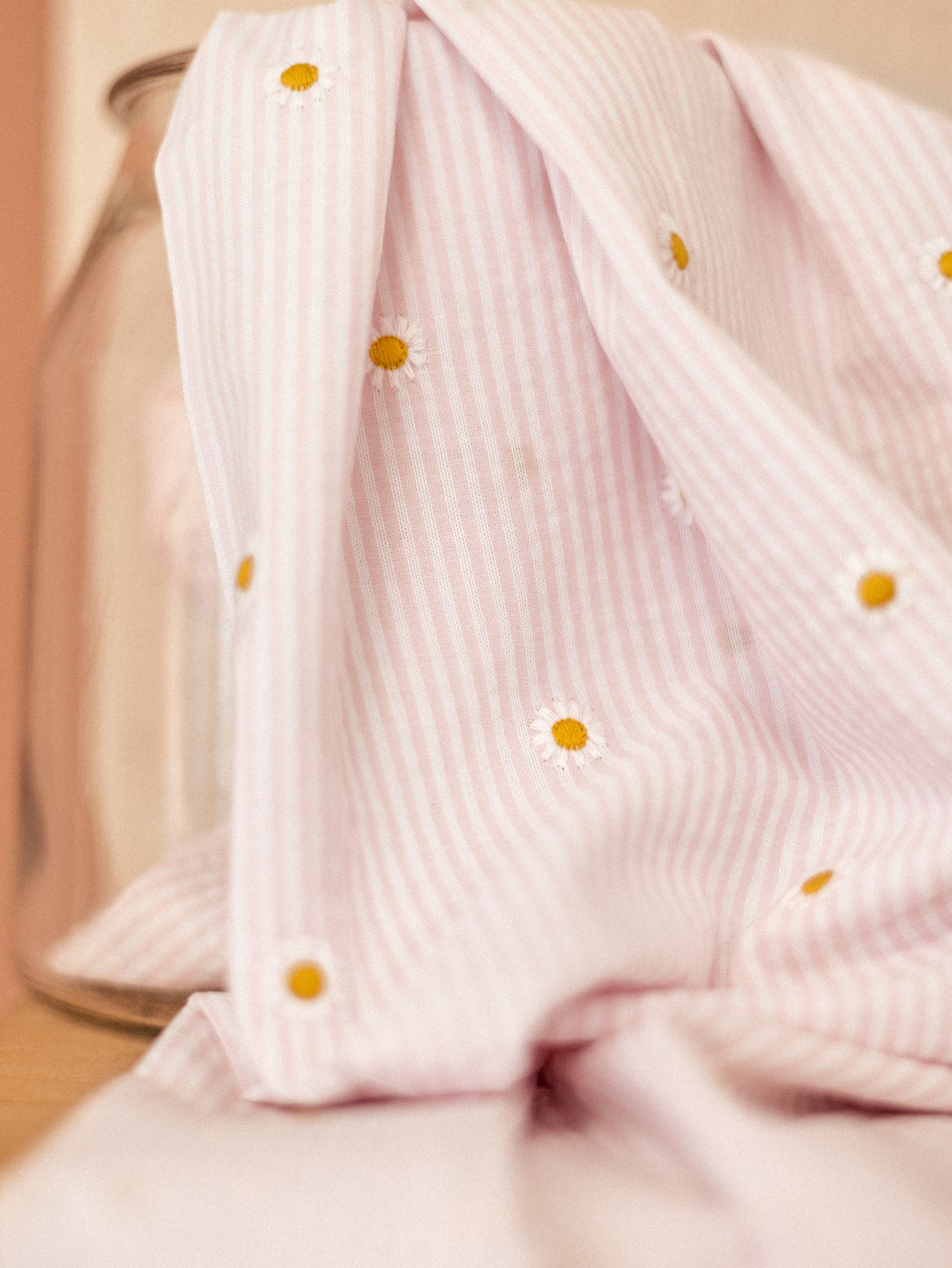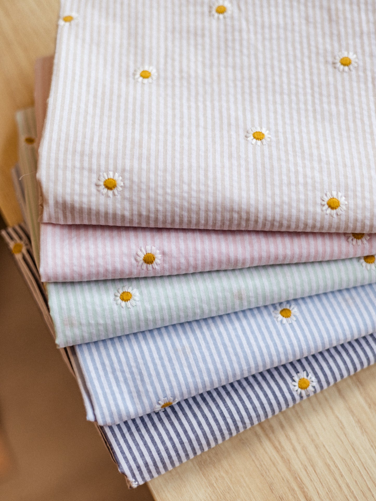 Cotton Seersucker / Stripes & Daisies - blush